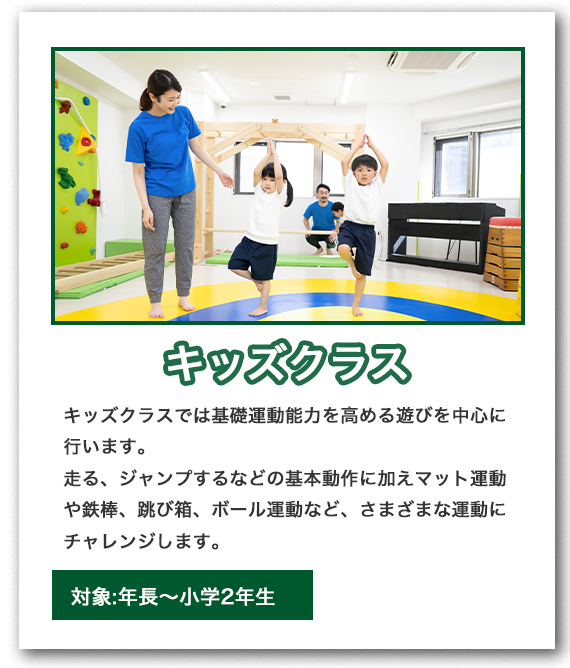 - A 5歳から13歳までのお子さまを対象にしています。年齢に応じたプログラムを提供しています。