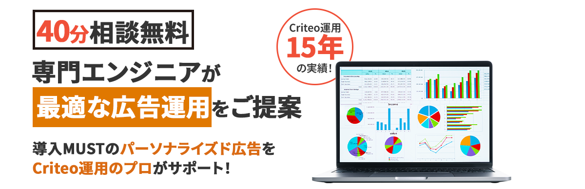 Criteoの専業代理店として15年以上の運用経験を持ち、EC、人材、教育、単品商材など幅広い業種で成果を出してきました。 Criteoパートナーである弊社が業界特有の課題に対し、お客様の「現状」と「目的」に最適な広告戦略を設計し、Criteo広告の効果を最大化するための運用ノウハウを提供します。
