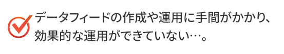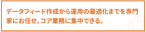 自社開発のDFOツール「iDfo」は、業界唯一のオペレーター対応型。SaaS型ではなく、経験豊富なスタッフによる担当制のため、お客様がID/Passでログインして操作する必要はありません。 専門エンジニアが広告配信からデータフィードの作成・管理・最適化までワンストップで対応。手間をかけずに効果的な運用を実現します。