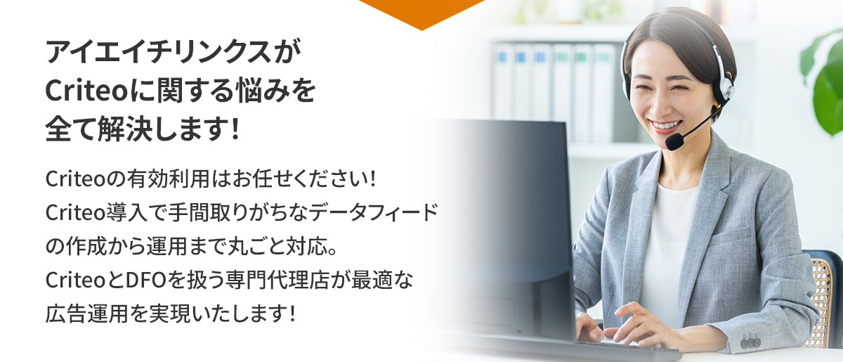 リスティング広告では、幅広く見込みユーザーを集めてこられますが、その後のコンバージョンには 弱い部分があり、リターゲティング「Criteo」の取り扱いをすすめていました。 社内には長けた人材がいないため外注先としてアイエイチリンクス社を選定。Criteo広告とDFOを ワンストップでアウトソースでき大変助かっています。 クライアント様に対してもトータルで提案することができ、結果、本業であるリスティング広告の売上 が3倍に増えました!