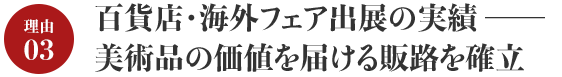 スイス・シンガポール・ベルギーなどの海外アートフェアにも出展。 国際的な評価基準も踏まえた査定で確かな価値をご提案します。