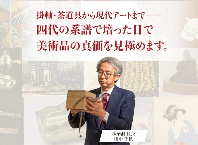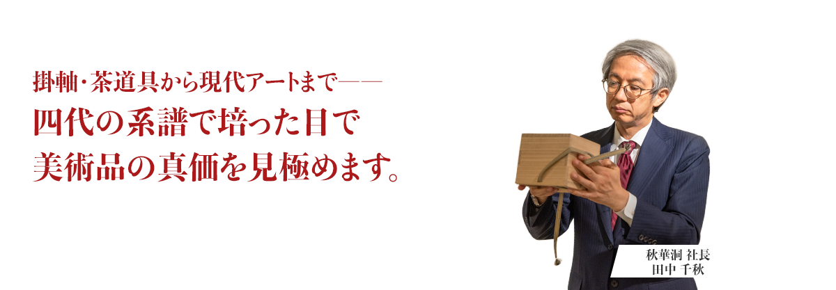 2003年、父・田中自知郎と共に銀座〈秋華洞〉を設立し、四代にわたる伝統を継承。現代市場にも通じた目利きとして、多くのお客様と向き合っております。