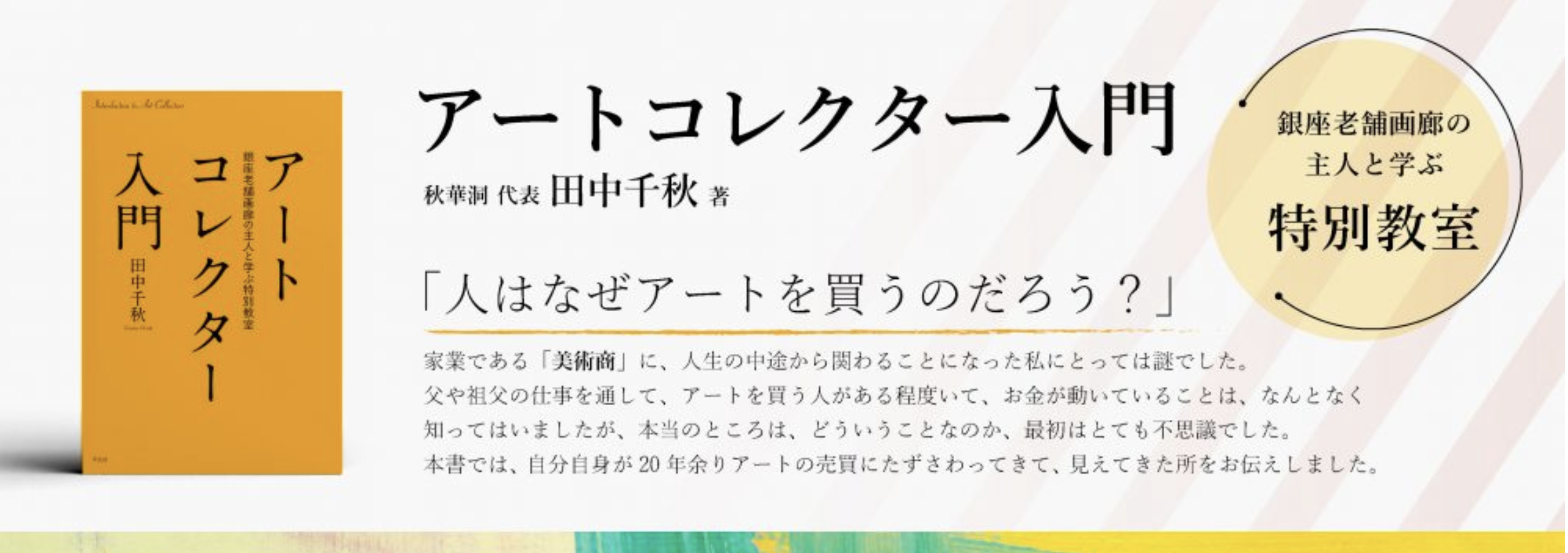 日本画・洋画・茶道具・浮世絵・現代アートに精通し、アートフェア出展や若手作家の発掘、美術館との連携にも尽力。著書『アートコレクター入門』などを通じ、美術の魅力を広く発信しています。