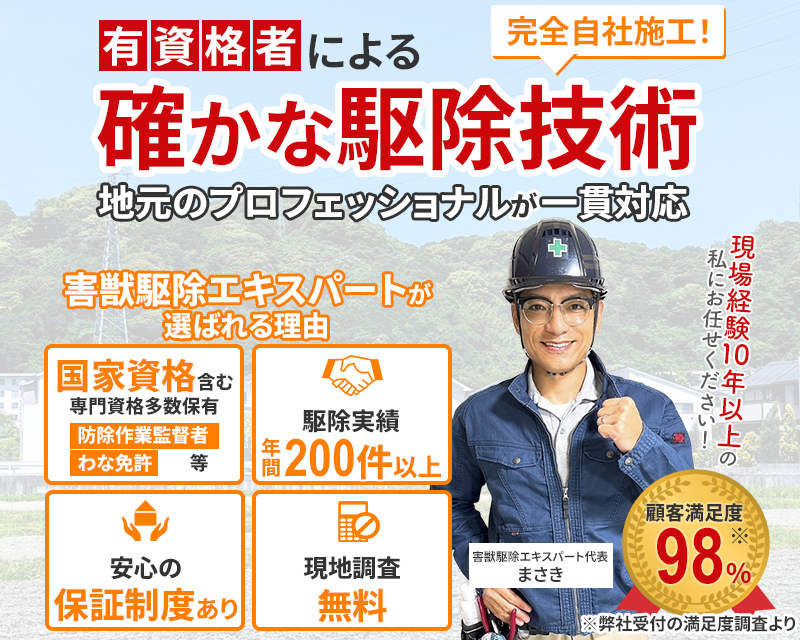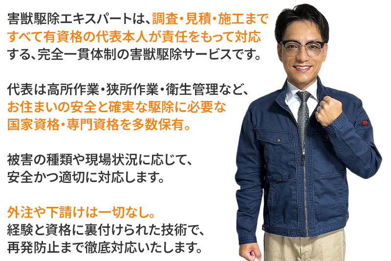 作業進捗や現場の状況も丁寧に説明してくださり、駆除完了まで安心して任せることができました。