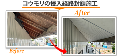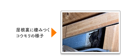 夕方に自宅の屋根の隙間から小さな黒い影が出入りしているのを発見。「ウチがコウモリの住処になってる!?」と驚かれご依頼。