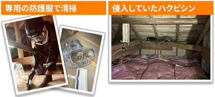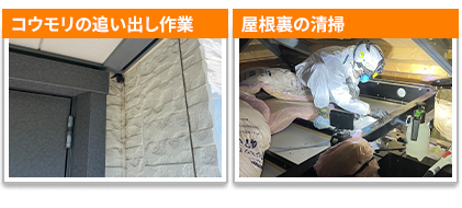 コウモリを追い出し、侵入経路を封鎖。フンまれになっていた屋根裏を掃除して、住宅の腐食や感染症のリスクを除去。