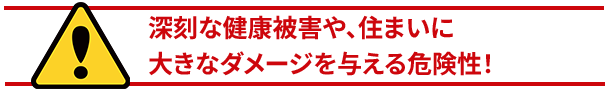 狭い屋根裏や壁の隙間に群れをつくるだけでなく、積もり続けるフンは、強烈な悪臭を放ったり感染症を引き起こす危険があります。