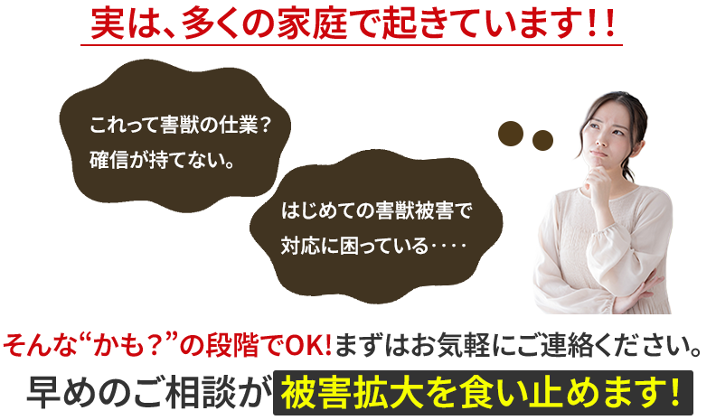 こちらでしっかりと現地調査を行い、害獣の種類も特定し駆除まで行います。